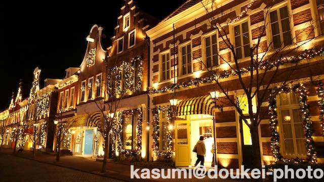 ヨーロッパ(オランダ)の街並みを舞台にしたクリスマスイルミネーションです。