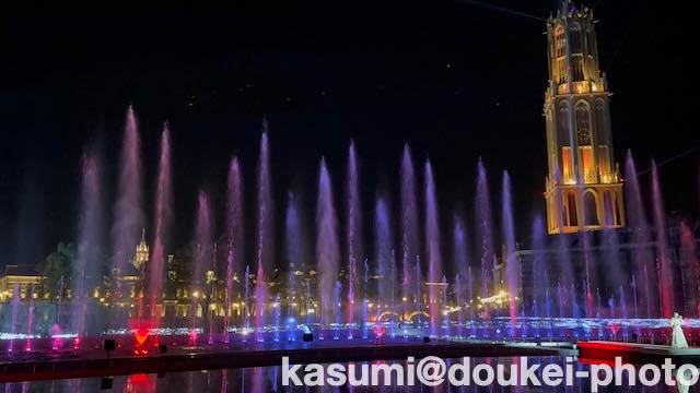 歌に合わせて、噴水が踊ります。